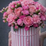 Ярко розовые розы в шляпной коробке