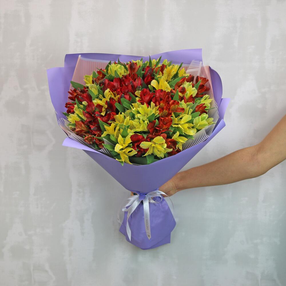 Букет из 39 альстромерий яркий микс в упаковке