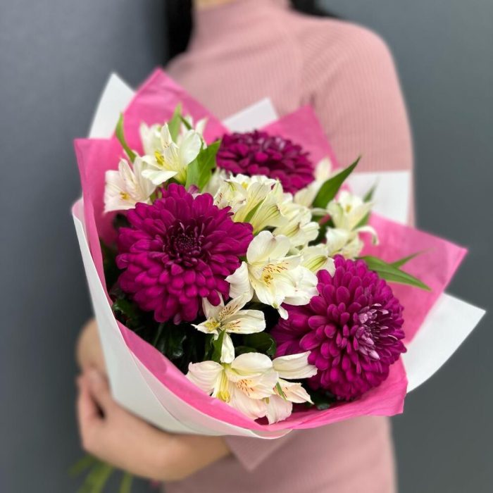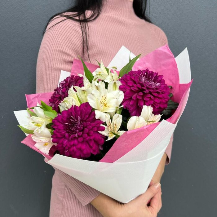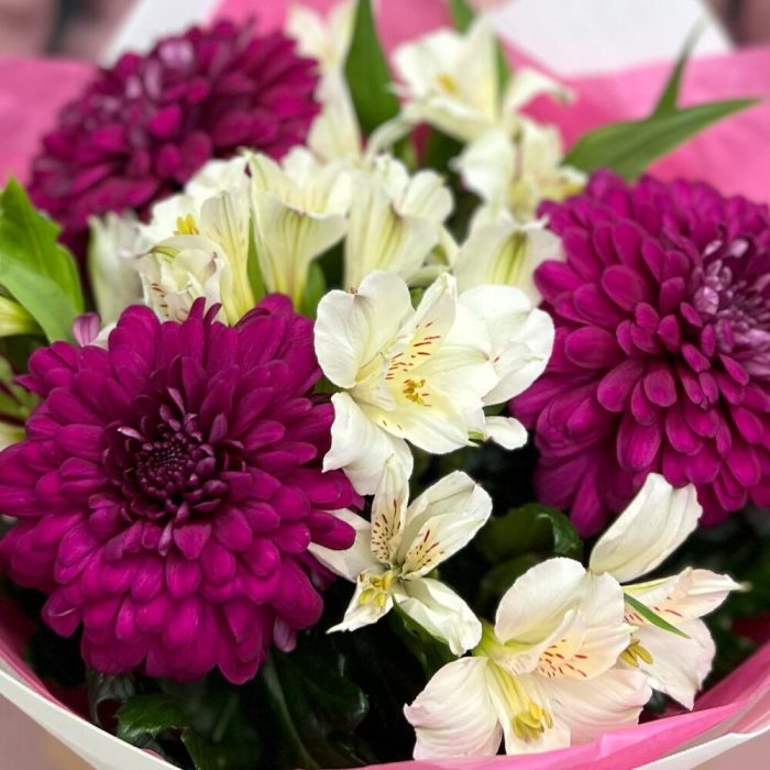 Букет из альстромерии с хризантемой