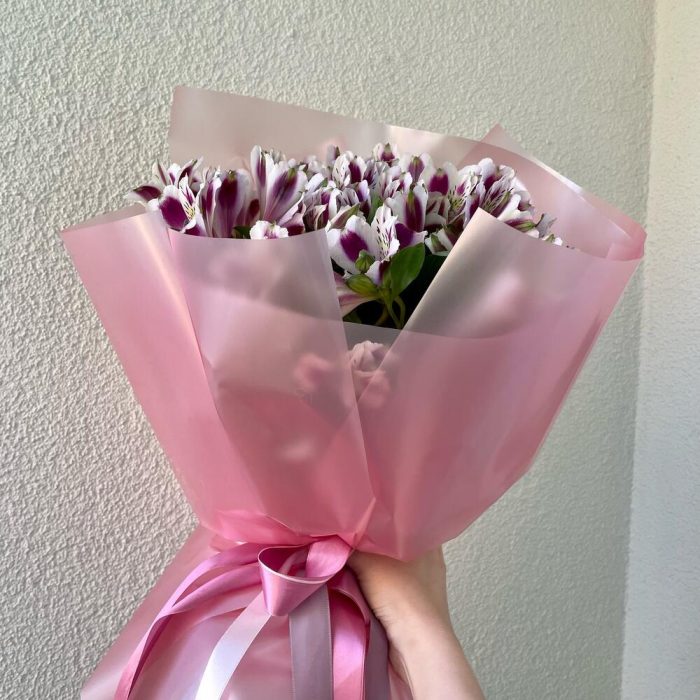 Альстромерия – 15 шт.Лента атласная – 3 шт.Дизайнерская упаковка – 1 шт.
