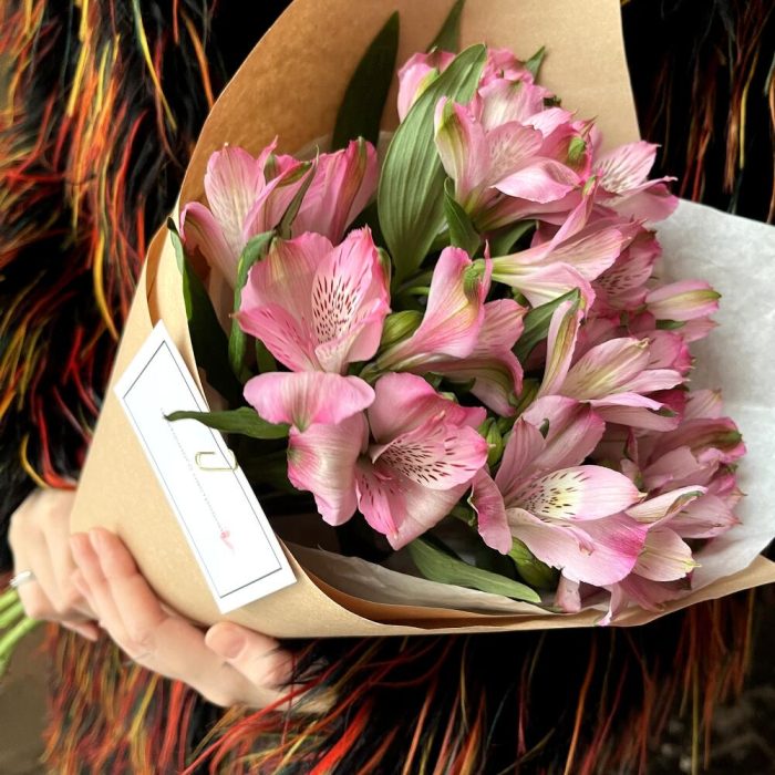 Альстромерия розовая – 7 шт.Дизайнерская упаковка – 1 шт.