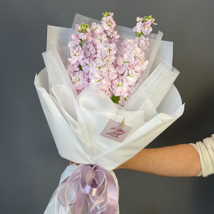 Лента – 2 шт.Маттиола – 5 шт.Упаковка дизайнерская – 2 шт.Открыточка с вашими пожеланиями – 1 шт.