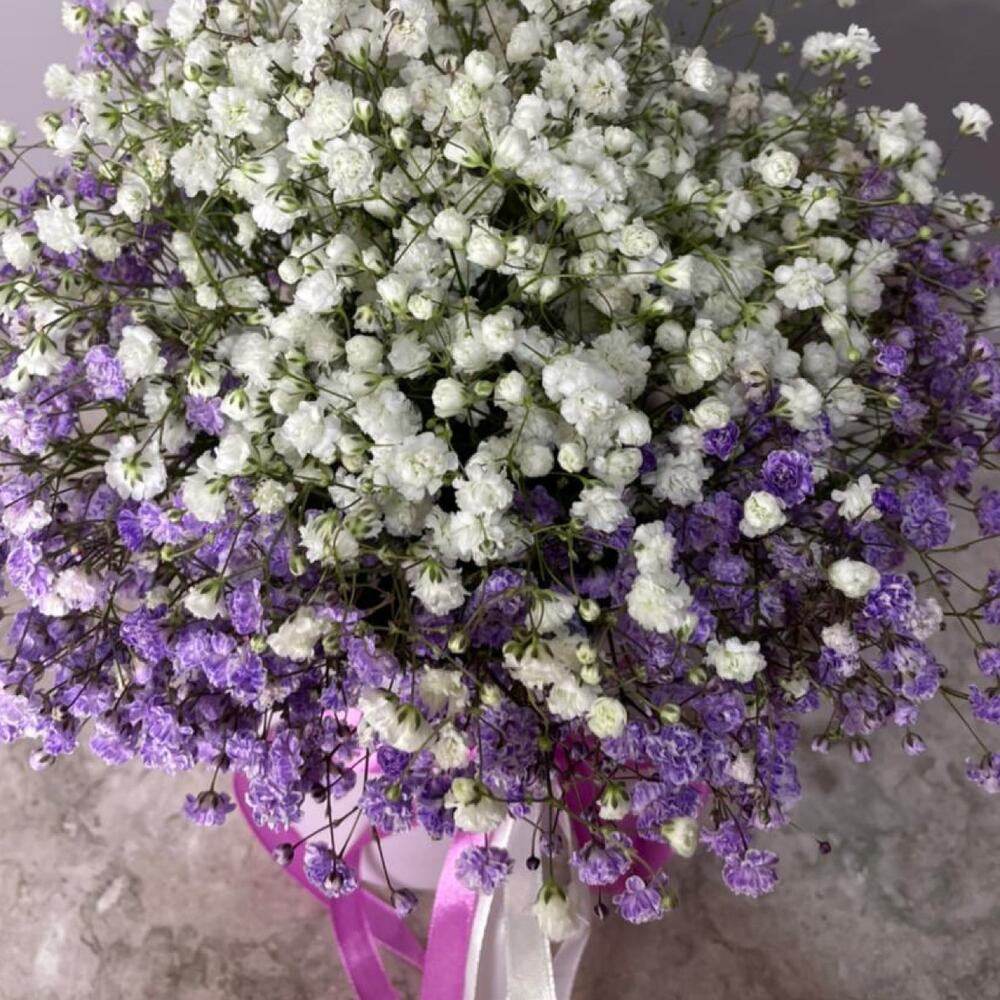 Фиолетовая гипсофила в шляпной коробке