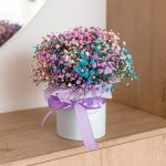 “Сиреневый туман” – композиция из гипсофилы в шляпной коробке