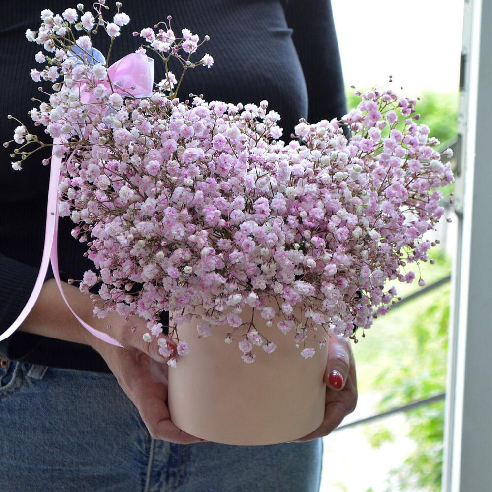 Гипсофила – 9 шт.Декоративная коробка – 1 шт.Декор – 1 шт.