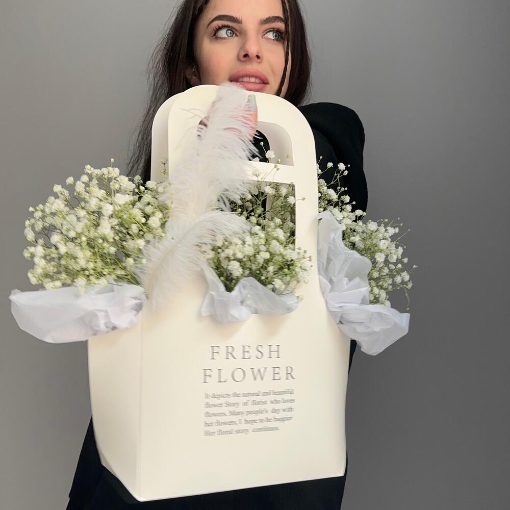 Гипсофила- один из самых модных цветов сейчас. Она безумно полюбилась всем девушкам за свою легкость, воздушность и конечно же стойкость. Со временем такая сумочка может стать сухоцветом