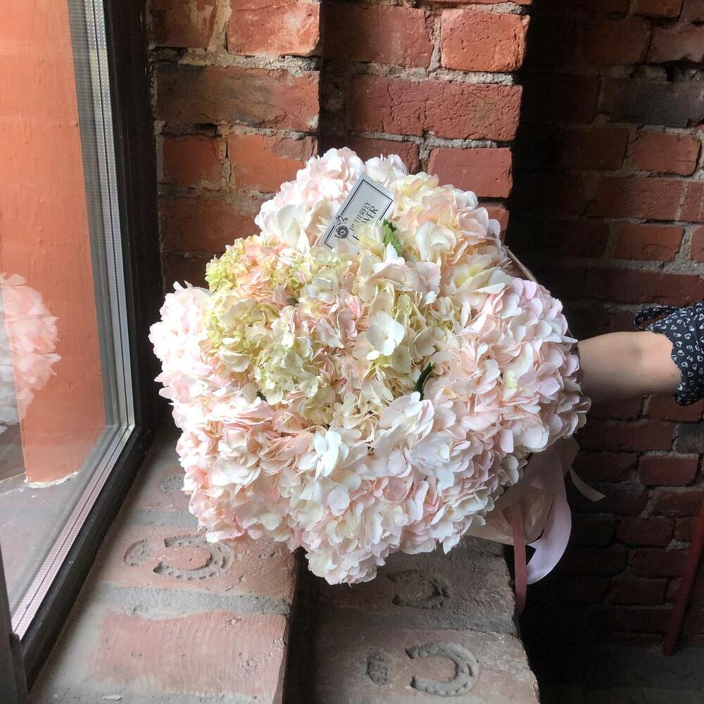 Красивый букет из 7 нежно-розовых гортензий "Суоранда"