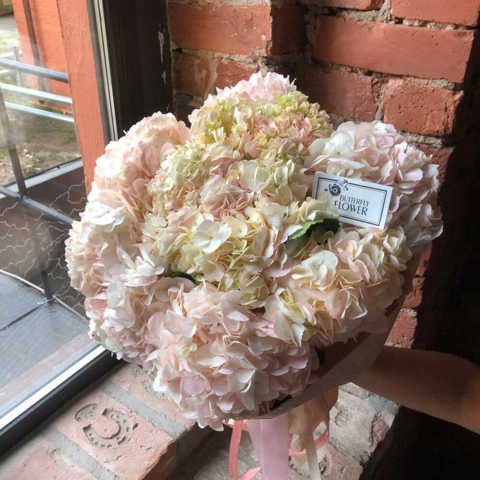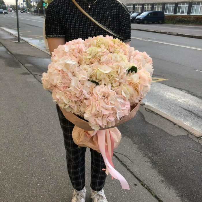 Красивый букет из 7 нежно-розовых гортензий “Суоранда”