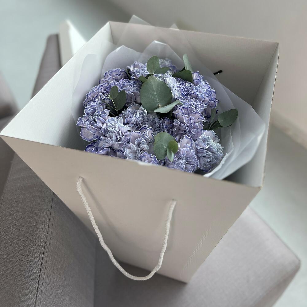 25 лавандовых гвоздик с эвкалиптом (букет N 25)