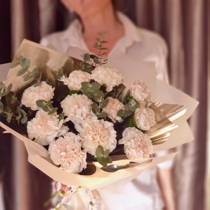 Букет с гвоздикой кремовой