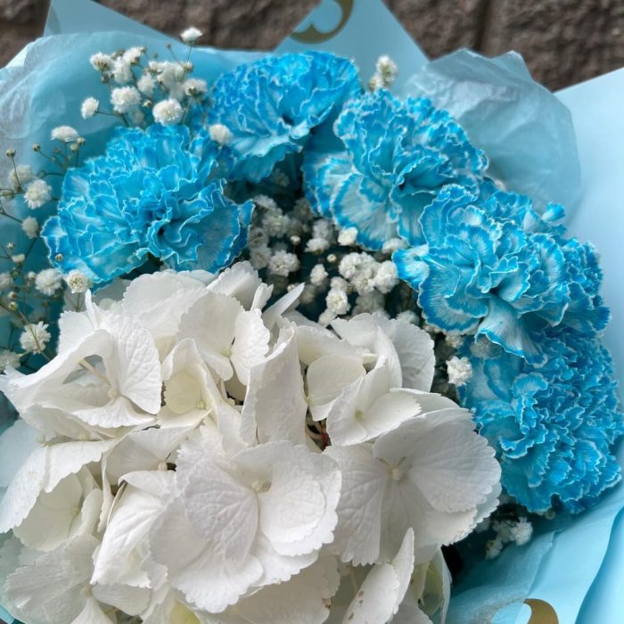 Гортензия – 1 шт.Диантус – 5 шт.Гипсофила – 2 шт.Упаковка дизайнерская – 4 шт.Лента атласная – 2 шт.