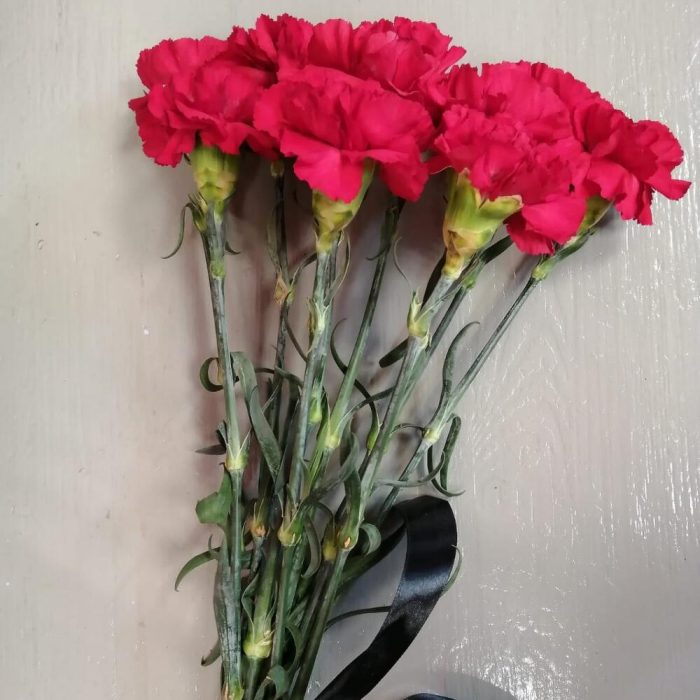 Лента атласная – 1 шт.Гвоздика красная – 10 шт.