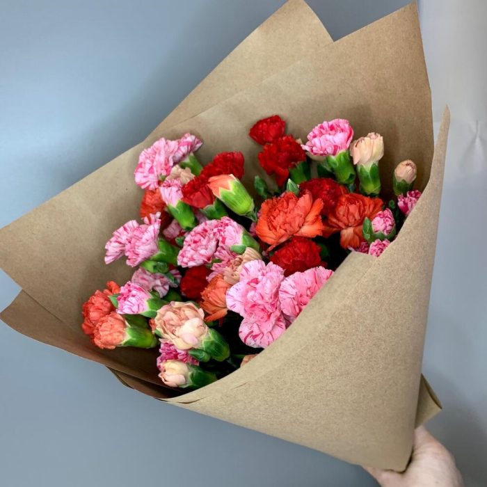 Лента атласная – 2 шт.Крафт – 2 шт.Диантус кустовой – 23 шт.