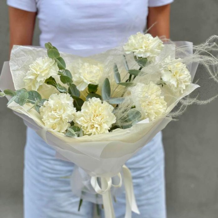 Диантус – 7 шт. Эвкалипт пучок – 1 шт. стипа – 2 шт. Упаковка дизайнерская – 1 шт.