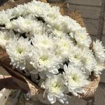Лента атласная – 1 шт.Хризантема кустовая белая – 7 шт.Упаковка дизайнерская – 1 шт.