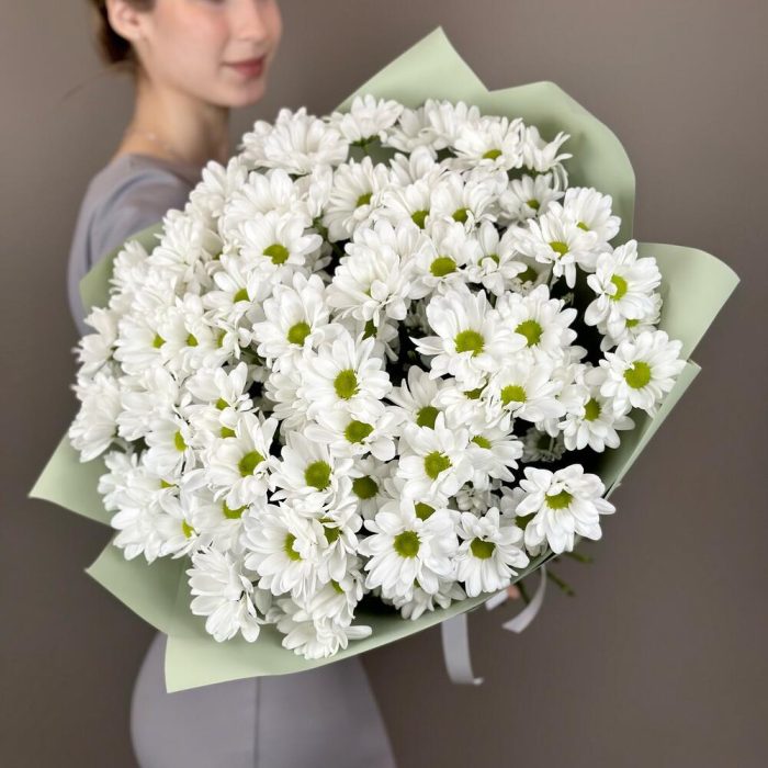 Хризантема кустовая – 15 шт.Лента атласная – 1 шт.Дизайнерская упаковка – 2 шт.