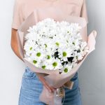 Букет “Ромашковое поле” из свежих хризантем 9 шт. (55 см)