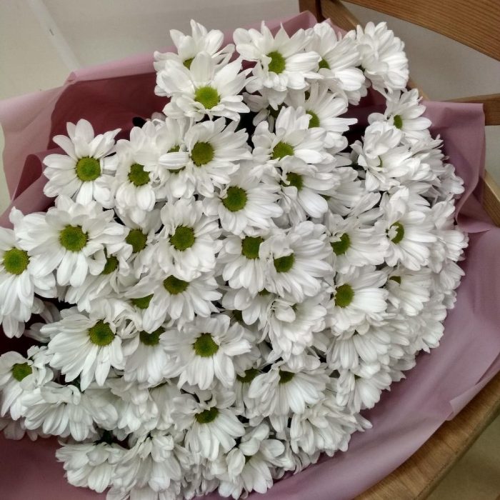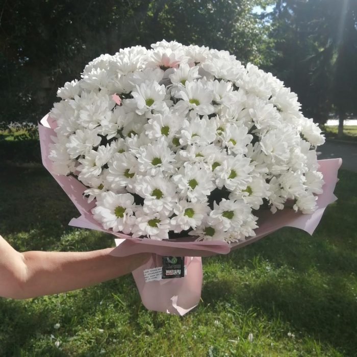 Шикарный букет из белых хризантем подарит настроение не только вам, но и вашим близким.