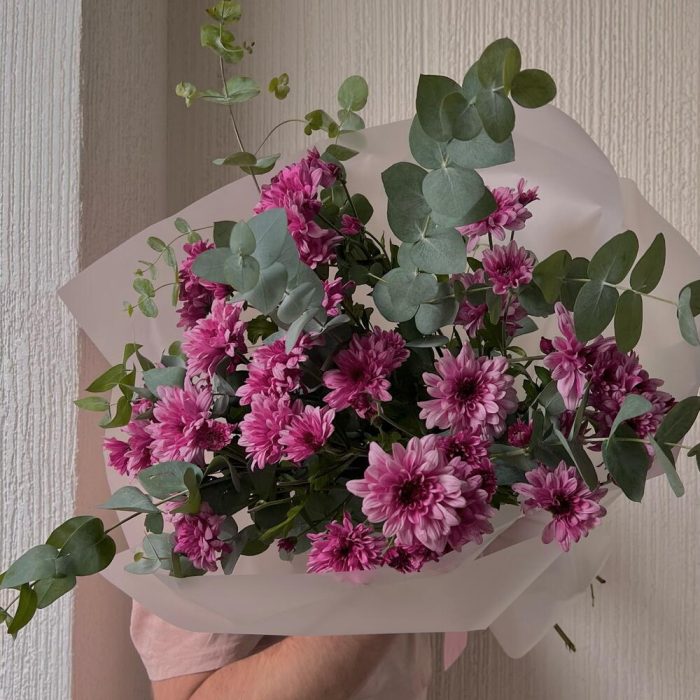 15 кустовых хризантем с зеленью