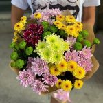 Яркий букет из разноцветных хризантем