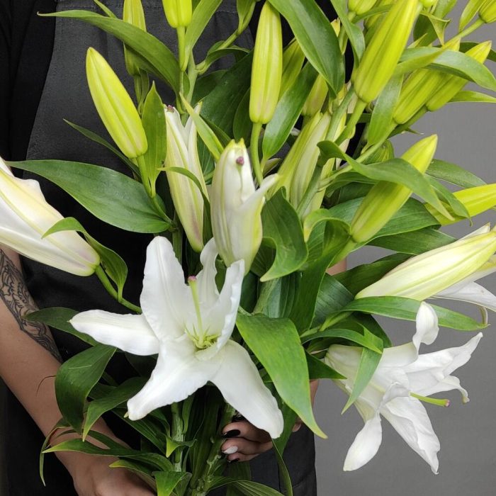 Лилия белая – 3 шт.Лента атласная – 1 шт.