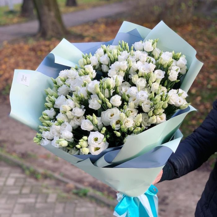 Эустома – 37 шт.цветная бумага – 1 шт.Атласная лента – 1 шт.