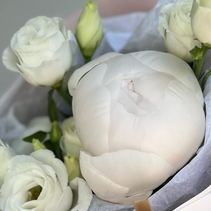 “Атлас☁️” – цветочная композиция с зефиром в деревянном ящике