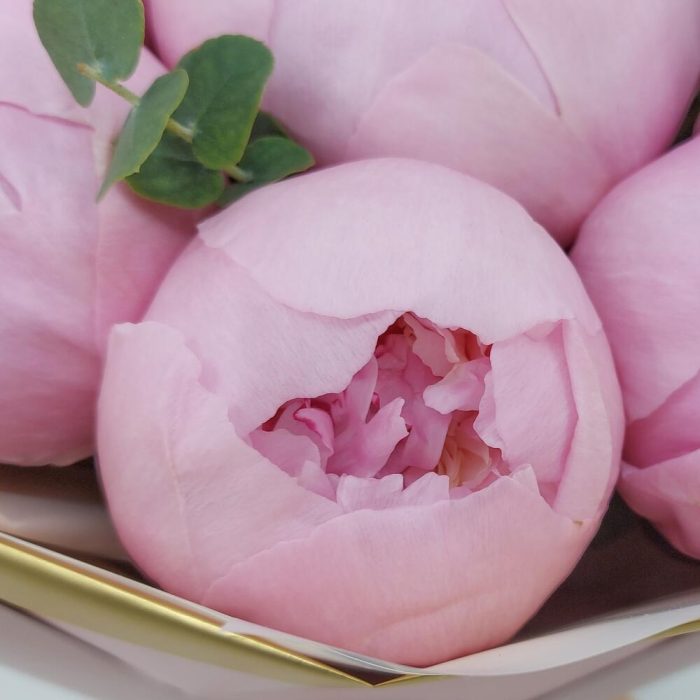 Эвкалипт – 1 шт.Упаковка дизайнерская – 1 шт.пион энджел чикс – 7 шт.