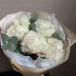 Букет из 7 белых кустовых хризантем в стильной упаковке