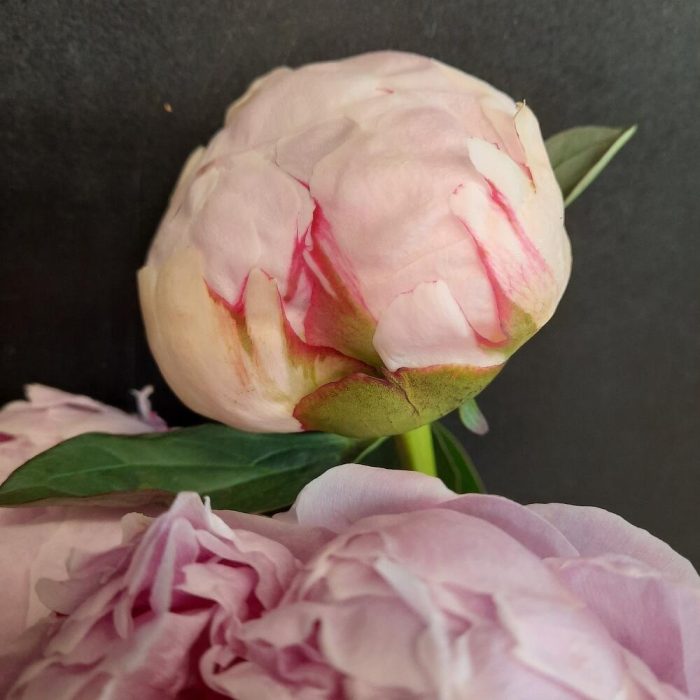 Минималистичный букет из 3 пионов сорта Sarah Bernardt