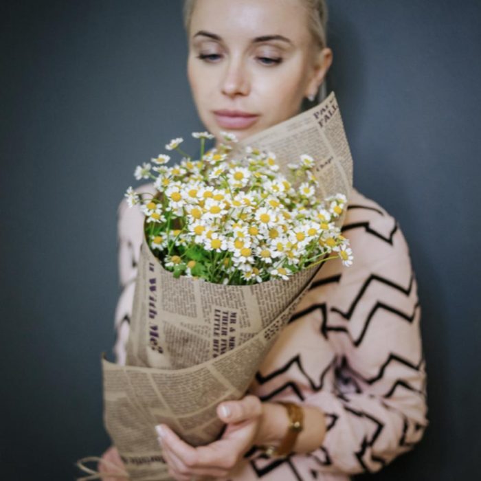 ромашки – 9 шт.дизайнерская упаковка и атласная лента – 1 шт.