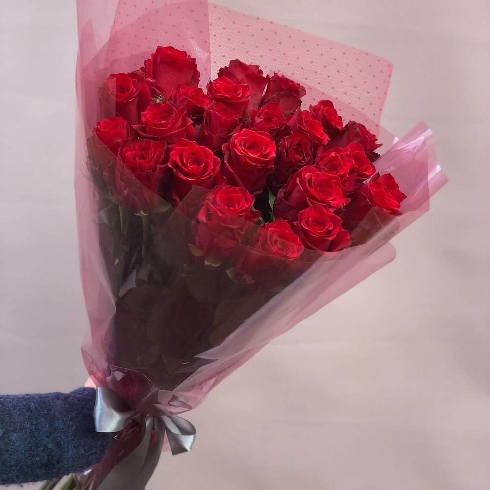 Роза красная 70 см – 25 шт.Упаковка дизайнерская – 3 шт.