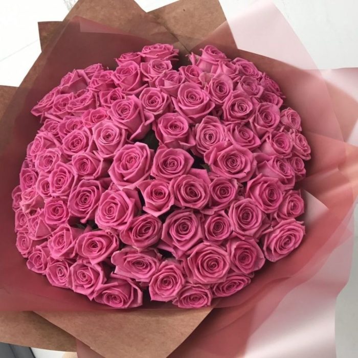 Роза Аква 50 см Россия – 79 шт.Крафт – 2 шт.Матовая пленка – 1 шт.Лента атласная – 1 шт.