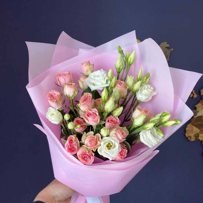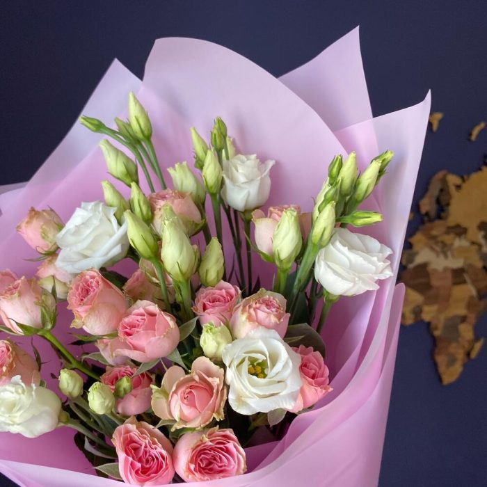Роза кустовая – 3 шт.Лизиантус – 4 шт.