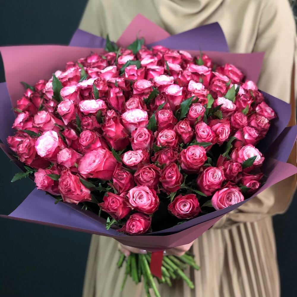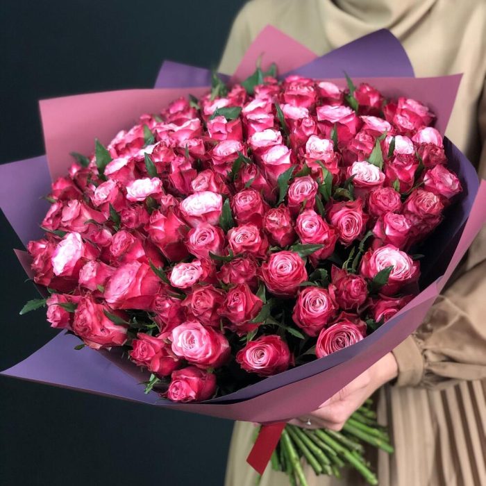 Букет 101 малиновая роза