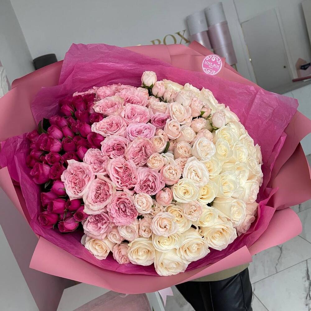 Букет градиент с пионовидными и кустовыми розами