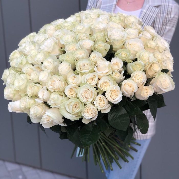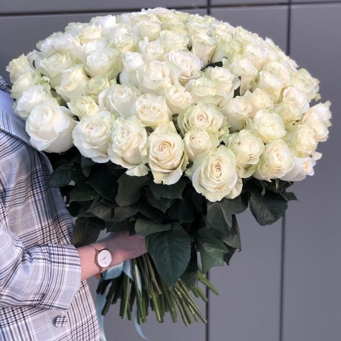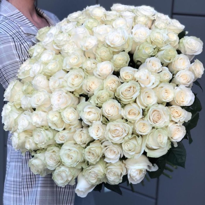 Метки: 101 роза, 14 февраля, Белые розы, от 5000 руб, Роза 60 см