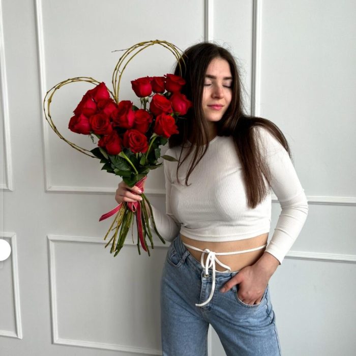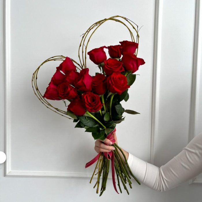 Букет из 15 красных роз “Сердечко”