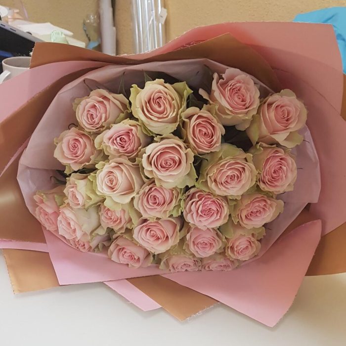 Роза Эквадор – 23 шт.Лента атласная – 2 шт.бумага дизайнерская – 4 шт.