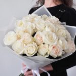 Букет из 25 белых высоких розы