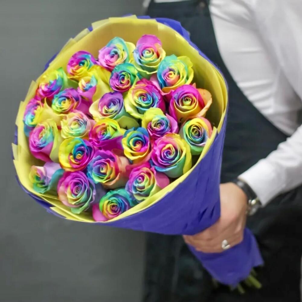 Роза эквадор радужная – 25 шт.