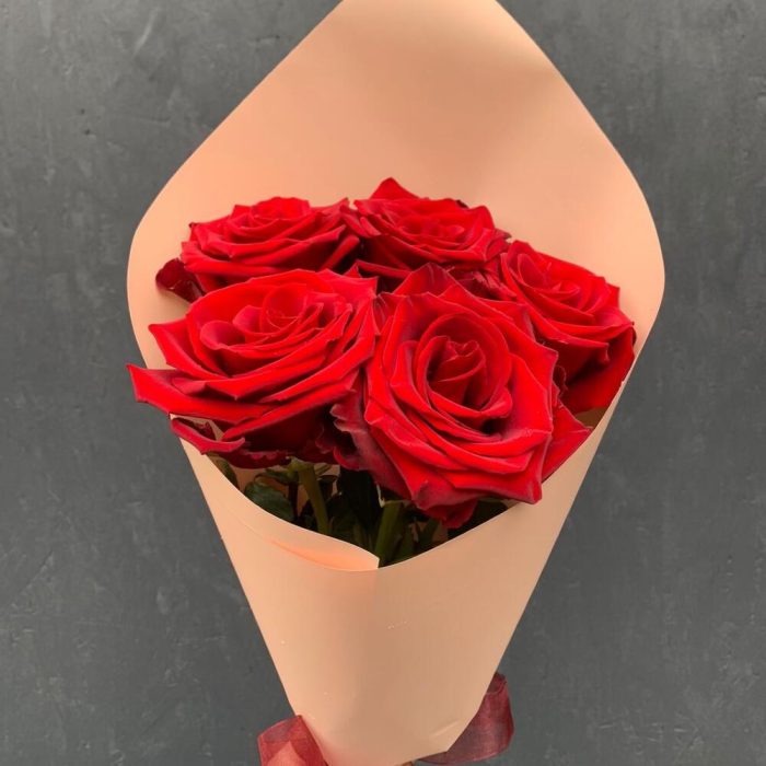 Роза – 5 шт.Упаковка – 1 шт.Лента – 1 шт.