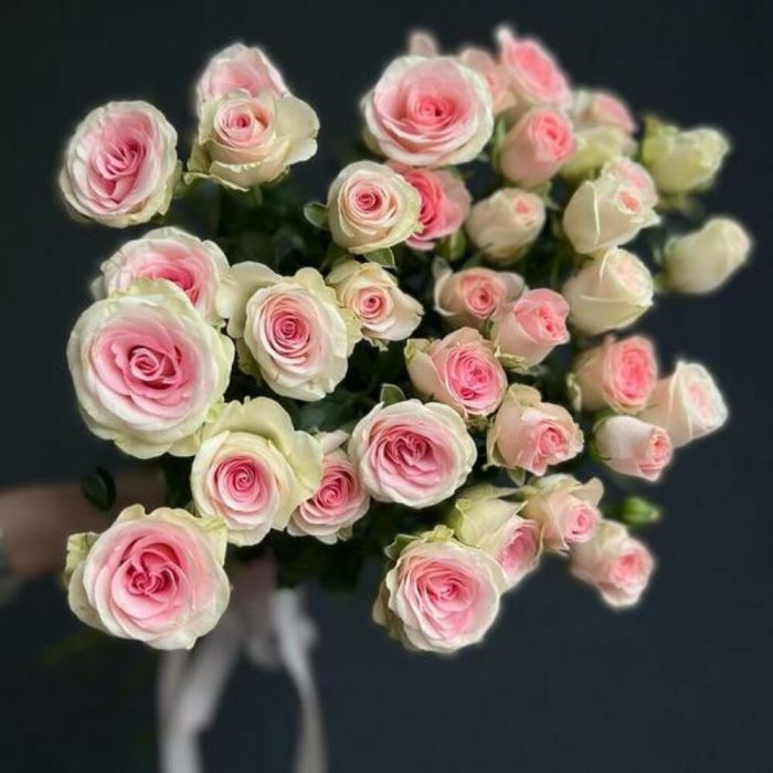 Кустовая роза – 5 шт.Атласная лента – 1 шт.
