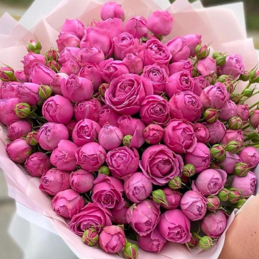 Роза кустовая пионовидная – 51 шт.Упаковка дизайнерская – 2 шт.Лента атласная – 2 шт.Открыточка с вашими пожеланиями – 1 шт.хорошее настроение – 100 шт.инструкция по уходу за цветами – 1 шт.коробка переноска – 1 шт.Кризал – 1 шт.