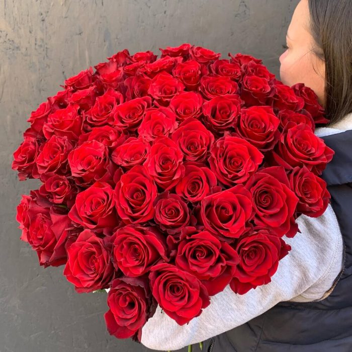 Букет из 55 длинных красных роз