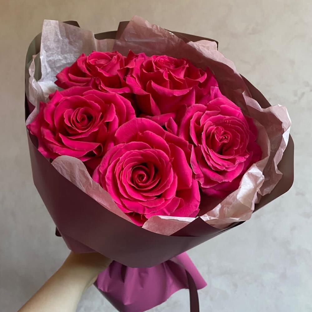 Одноголовая роза – 5 шт.декоративная упаковка – 1 шт.Атласная лента – 1 шт.