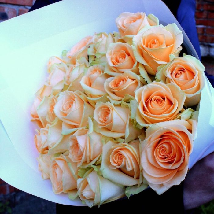 Лента атласная – 1 шт.роза пич аваланж – 25 шт.упаковочный материал – 3 шт.