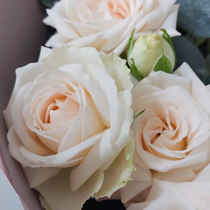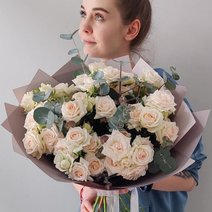 Букет из кустовых роз и эвкалипта
