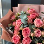 Букет из пионовидной кустовой розы и эвкалипт