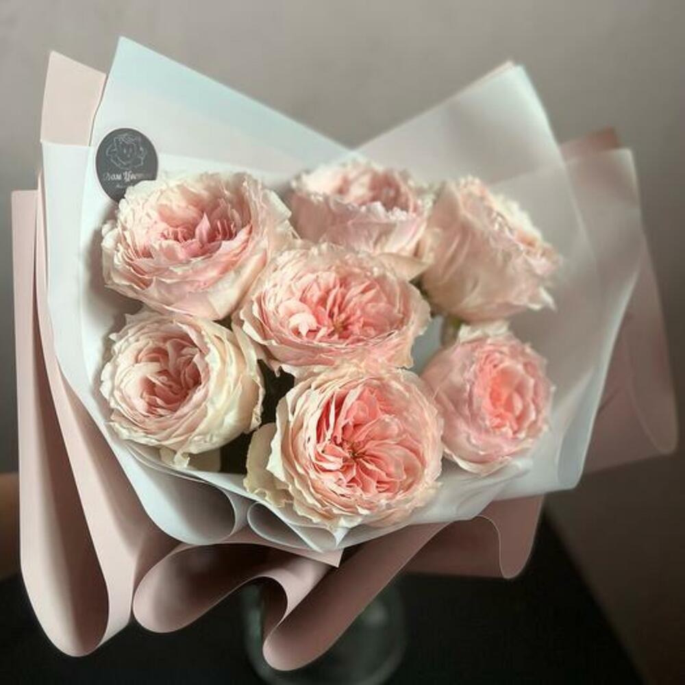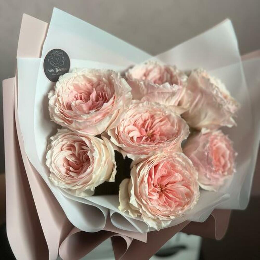 Пионовидная роза – 7 шт.Атласная лента – 1 шт.декоративная упаковка – 2 шт.